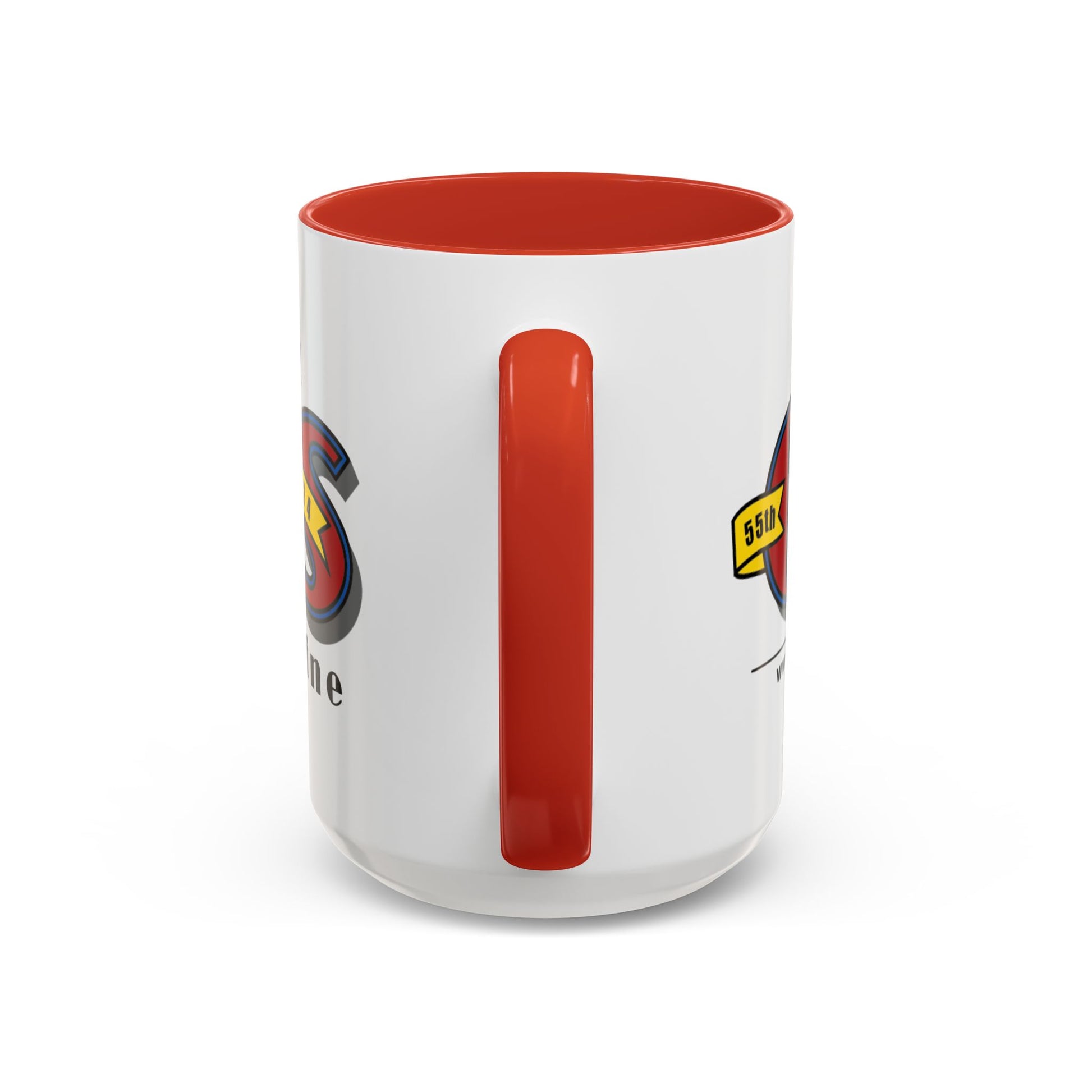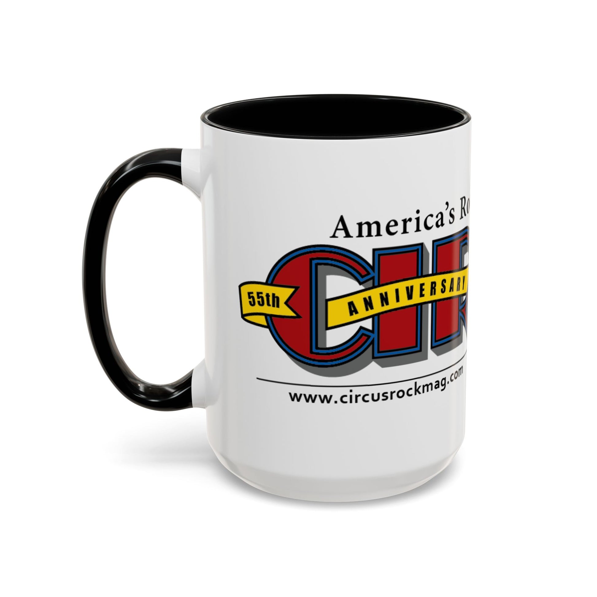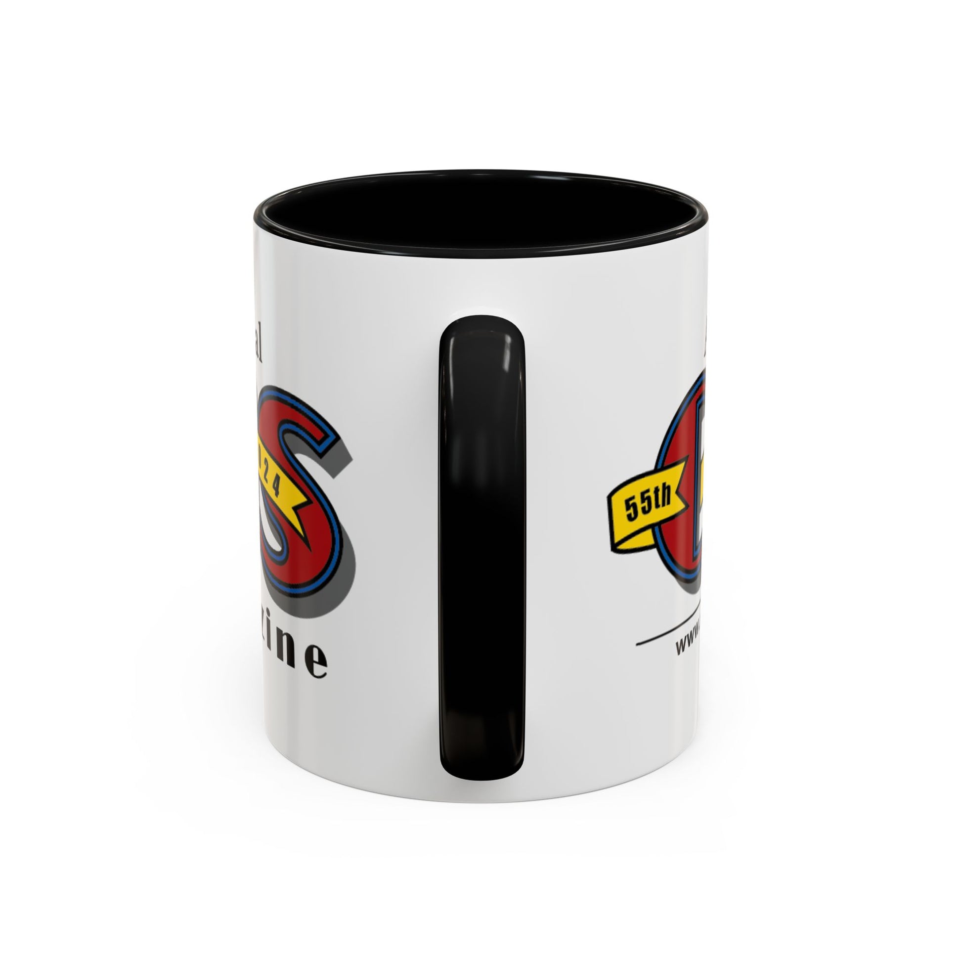 Meet your next favorite morning companion, the accented ceramic mug featuring our 55th Anniversary Logo. This mug brings the perfect blend of style and functionality to elevate your coffee or tea ritual. Available in two generous sizes, 11oz (0.33 l) and 15oz (0.44 l), this mug offers ample space for your favorite brew. Made with white ceramic and sporting a sleek glossy finish with eye-catching contrast, this mug is a bliss both to use and to look at. The ergonomic C-shaped handle provides a comfortable grip, while the lead and BPA-free construction guarantee peace of mind with every sip.